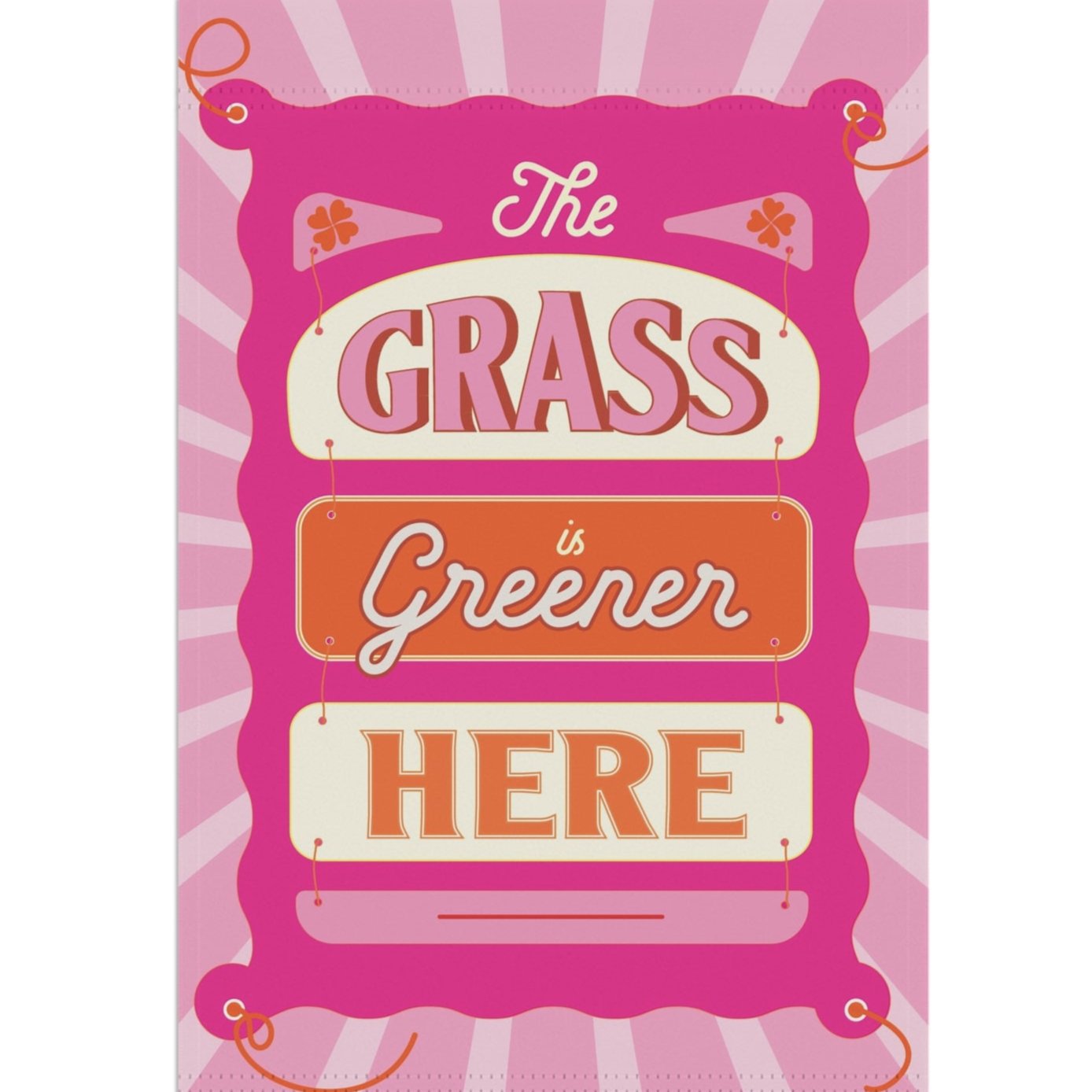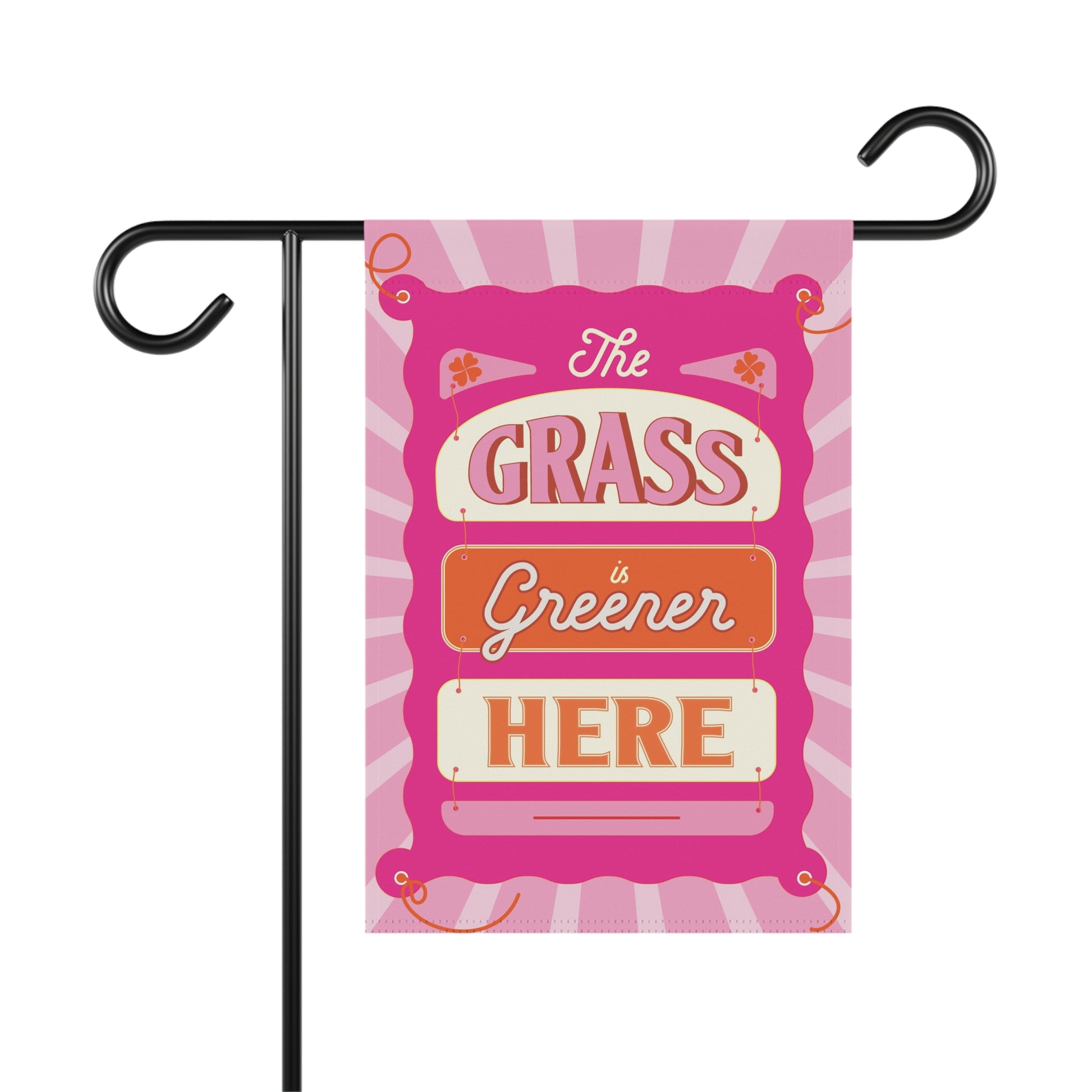 The Grass here Greener here >> Garden Flag 12"x18" Pink!